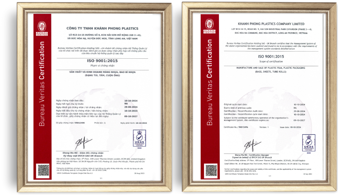 NHÀ MÁY KHÁNH PHONG ĐẠT CHUẨN ISO 9001:2015